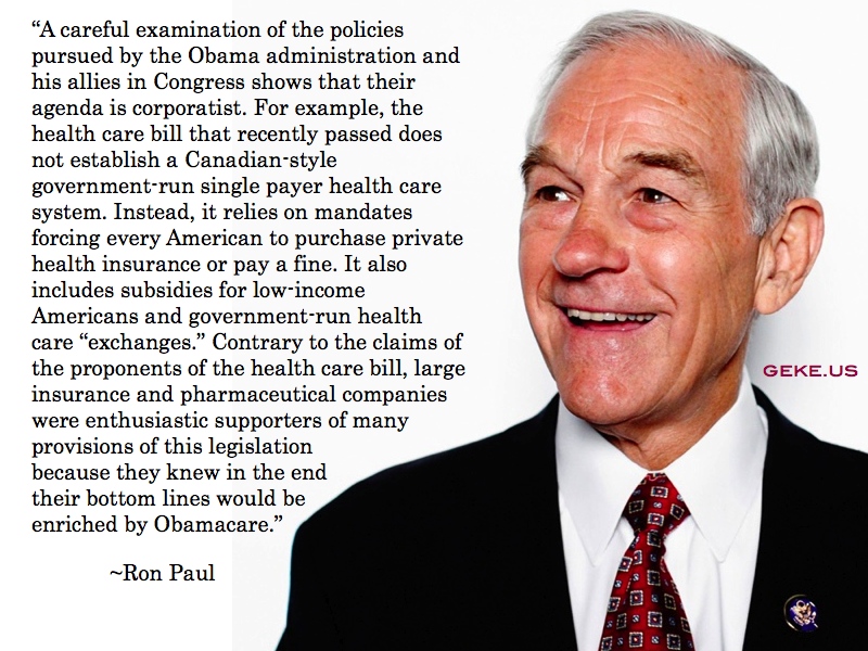Ron Paul explains why President Obama is not a socialist: He’s a corporatist.
