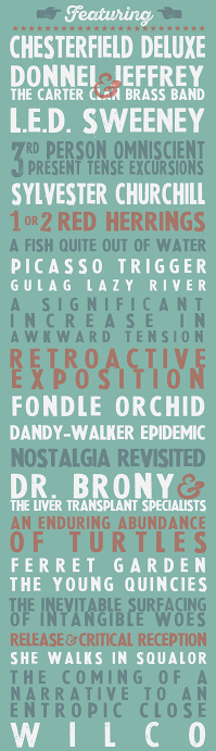 Not just on the cover, but in the pages themselves - It features Wilco, Nick Cave, Jack White, The Decembrists, Radiohead, Ben Kweller, Modest Moust, and other band names references throughout!