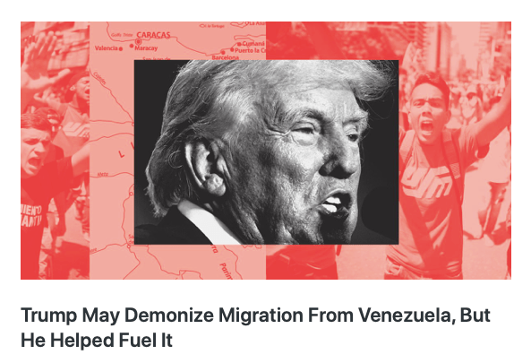 He catalyzed the collapse of the Venezuelan government (over 40,000 people died, like what a war does), then demonized Venezuelan immigrants to America.